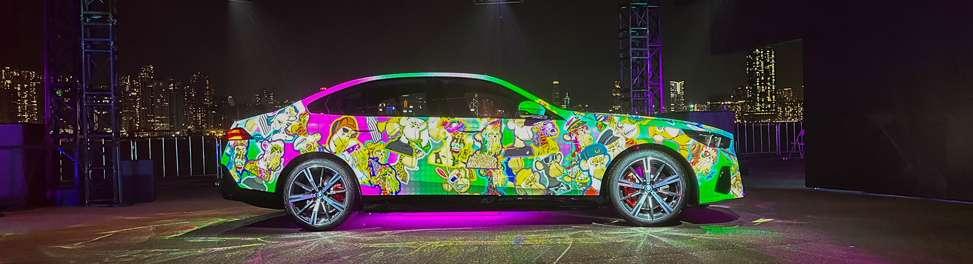 Our task was to create a projection mapping display for a BMW i5. Specifically, I was responsible for preparing the 3D model of the new BMW i5. This involved creating and applying UV maps to the car's bodywork and refining the topology of the 3D model to ensure it was suitable for the projection mapping process.